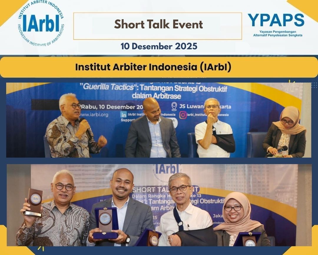 IARBI Short Talk hadir mengangkat tema “Tantangan Strategi Obstruktif dalam Arbitrase”, membahas berbagai taktik yang kerap digunakan untuk menghambat proses arbitrase serta dampaknya terhadap efektivitas dan keadilan penyelesaian sengketa. Melalui diskusi singkat namun mendalam, para praktisi dan akademisi akan berbagi pandangan strategis, pengalaman praktik, serta solusi dalam menghadapi dan mengantisipasi strategi obstruktif agar proses arbitrase tetap efisien, adil, dan berintegritas.